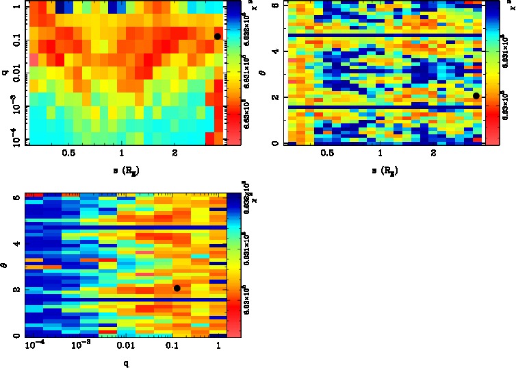 | tE(day) | q | s | u0 | α(radian) | ρ | πE,N | πE,E | χ² |