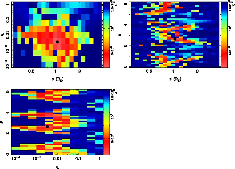 | tE(day) | q | s | u0 | α(radian) | ρ | πE,N | πE,E | χ² |
