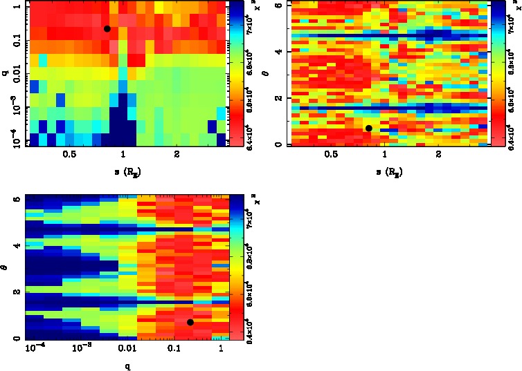 | tE(day) | q | s | α(radian) | ρ | χ² |