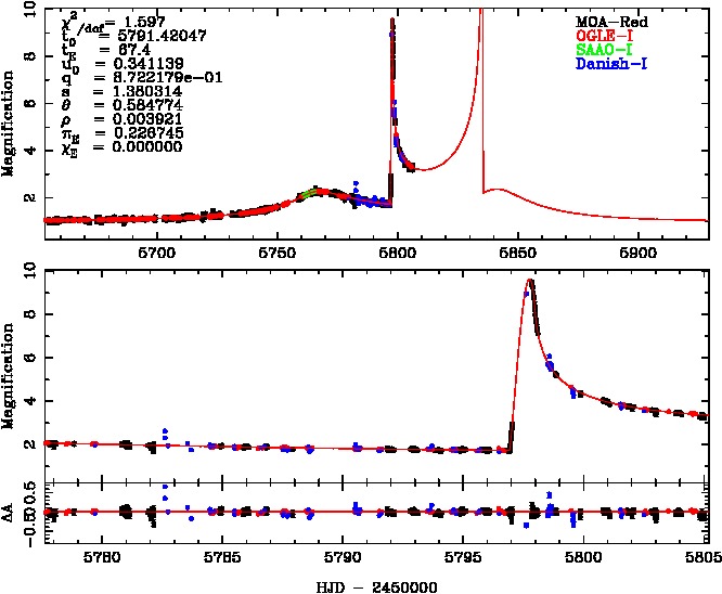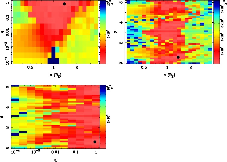 | tE(day) | q | s | α(radian) | ρ | χ² |