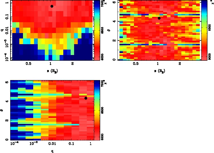 | tE(day) | q | s | α(radian) | ρ | χ² |
