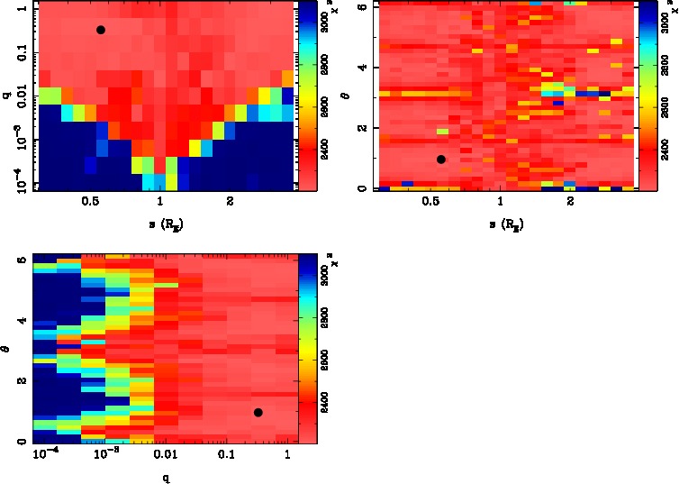 | tE(day) | q | s | α(radian) | ρ | χ² |