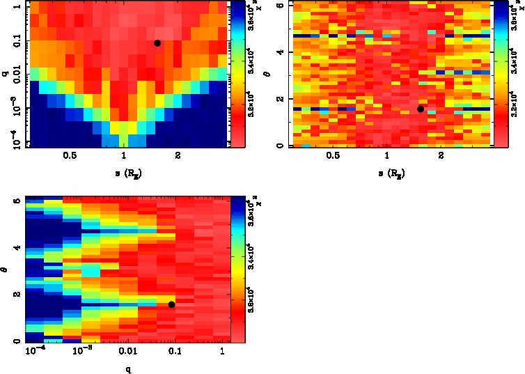 | tE(day) | q | s | α(radian) | ρ | χ² |