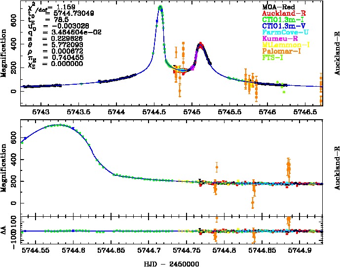| tE(day) | q | s | α(radian) | ρ | χ² |