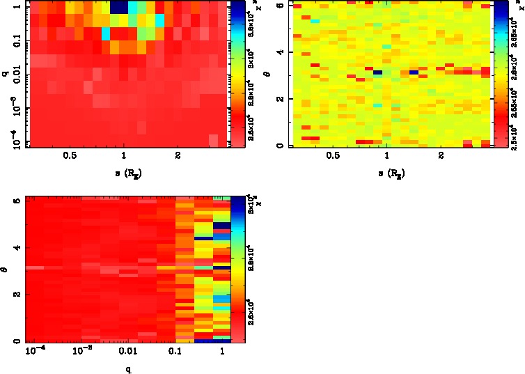 | tE(day) | q | s | u0 | α(radian) | ρ | πE,N | πE,E | χ² |
