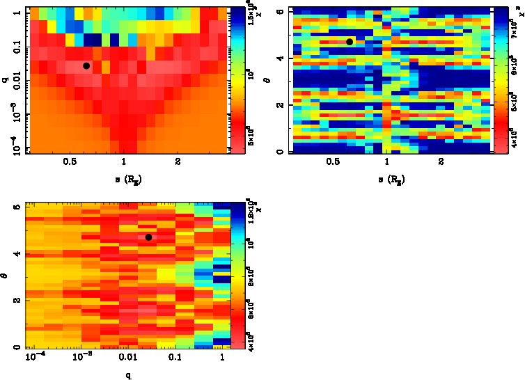 | tE(day) | q | s | α(radian) | ρ | χ² |