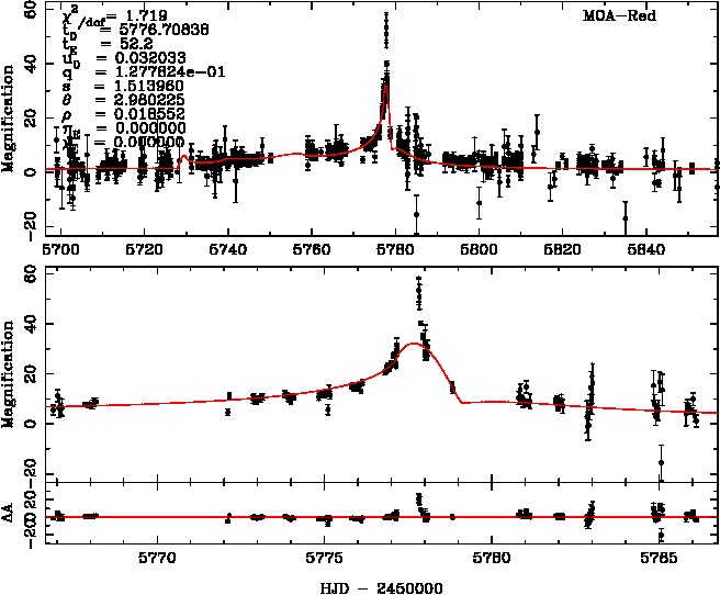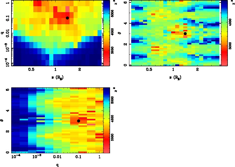 | tE(day) | q | s | α(radian) | ρ | χ² |