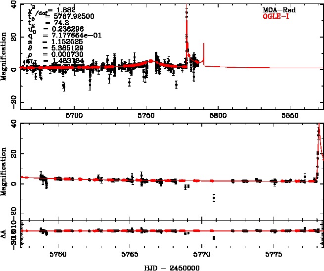 | tE(day) | q | s | α(radian) | ρ | χ² |