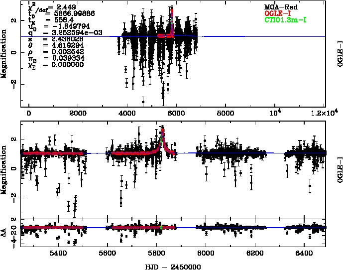 | tE(day) | q | s | α(radian) | ρ | χ² |