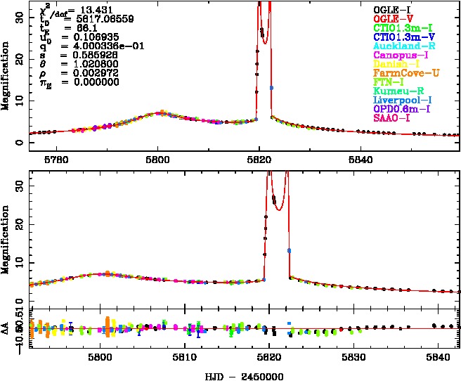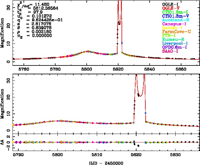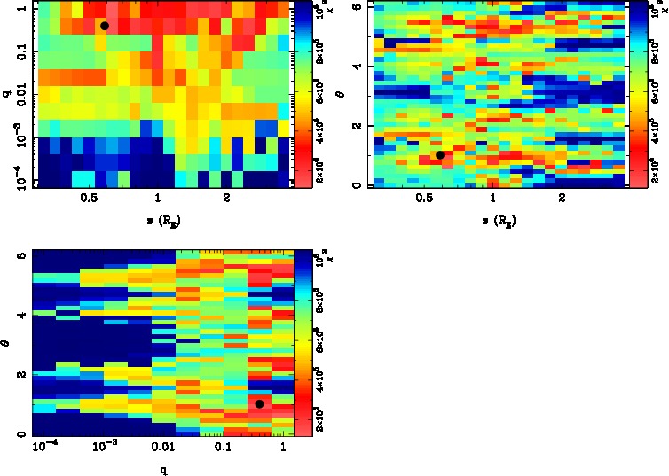 | tE(day) | q | s | α(radian) | ρ | χ² |