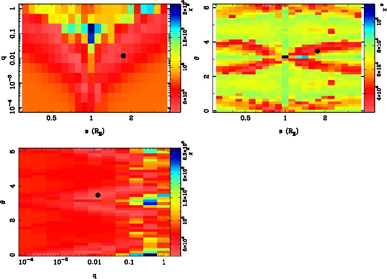 | tE(day) | q | s | α(radian) | ρ | χ² |