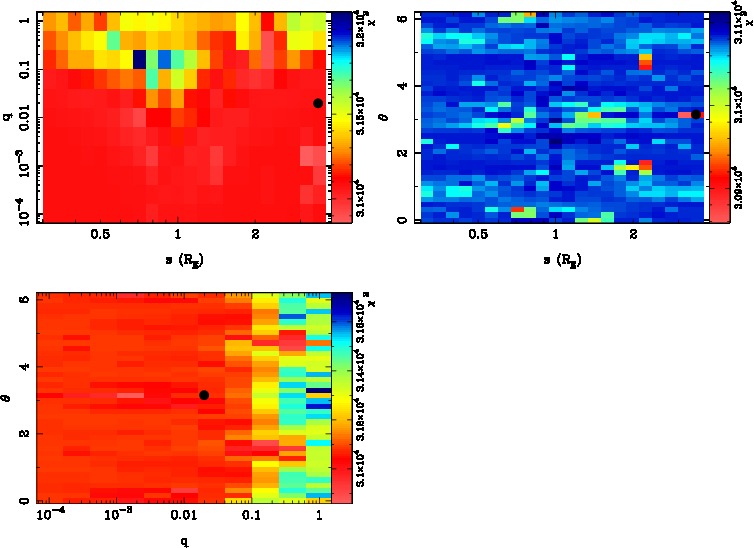 | tE(day) | q | s | α(radian) | ρ | χ² |