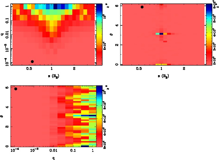 | tE(day) | q | s | α(radian) | ρ | χ² |
