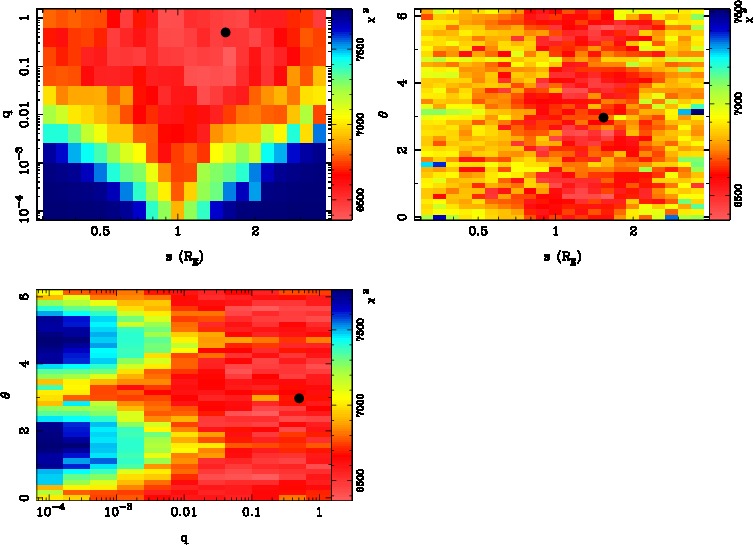 | tE(day) | q | s | α(radian) | ρ | χ² |