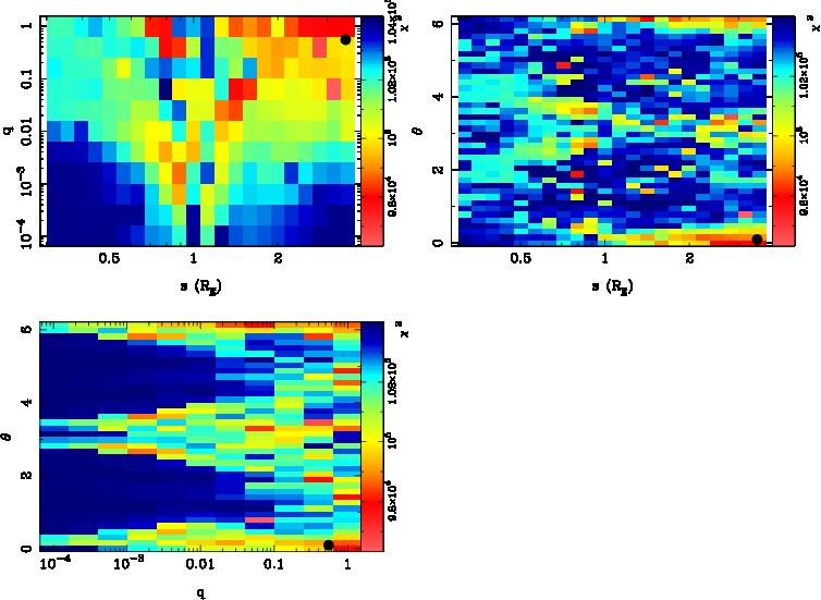 | tE(day) | q | s | α(radian) | ρ | χ² |