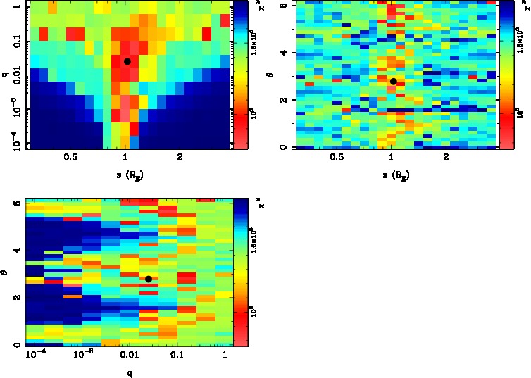 | tE(day) | q | s | α(radian) | ρ | χ² |