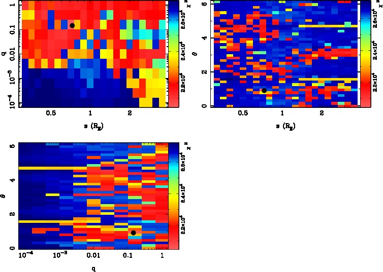 | tE(day) | q | s | α(radian) | ρ | χ² |