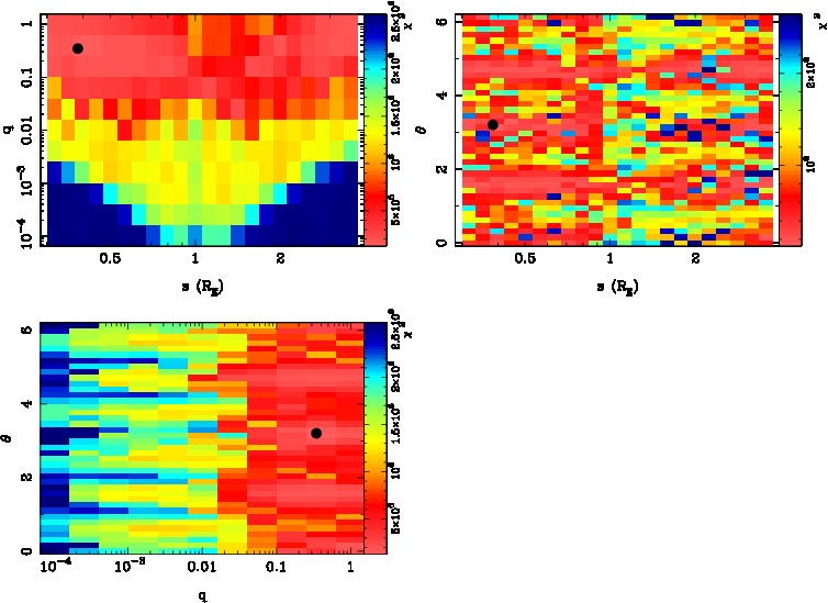 | tE(day) | q | s | α(radian) | ρ | χ² |