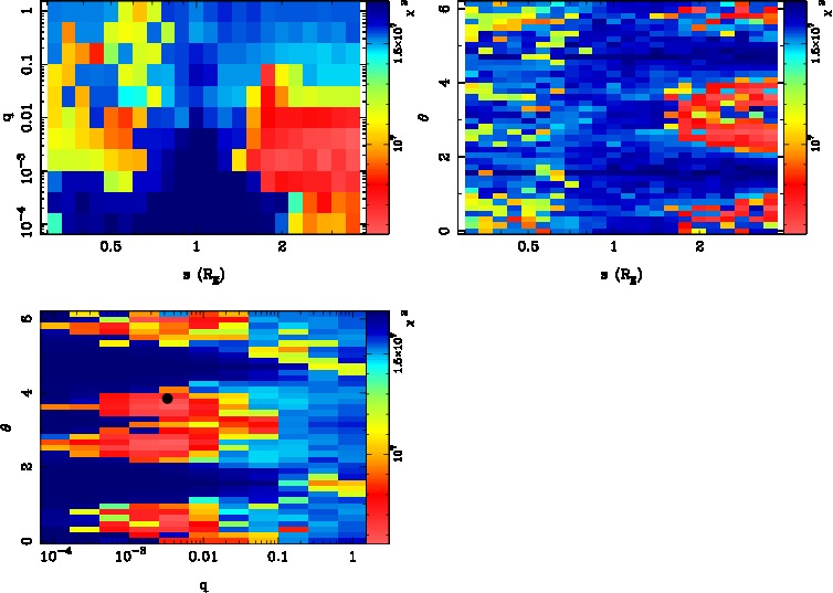 | tE(day) | q | s | α(radian) | ρ | χ² |