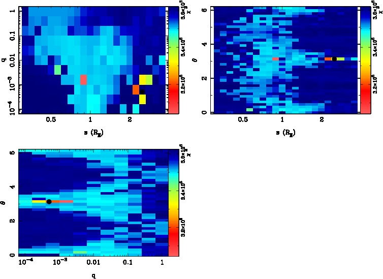 | tE(day) | q | s | α(radian) | ρ | χ² |