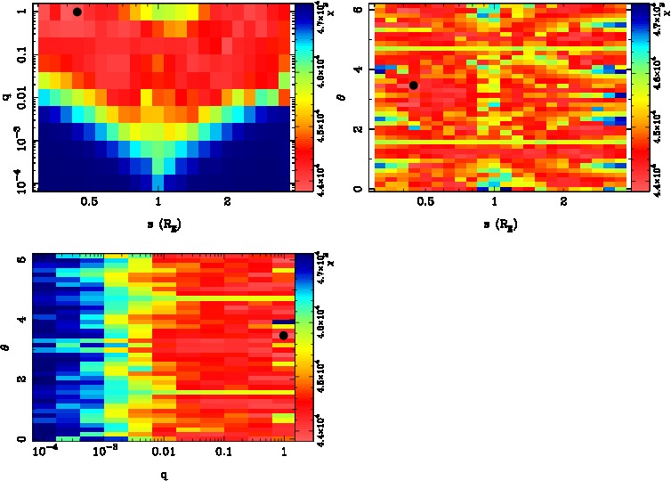 | tE(day) | q | s | α(radian) | ρ | χ² |
