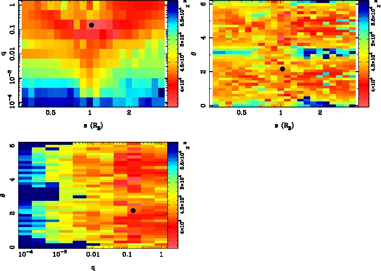 | tE(day) | q | s | α(radian) | ρ | χ² |