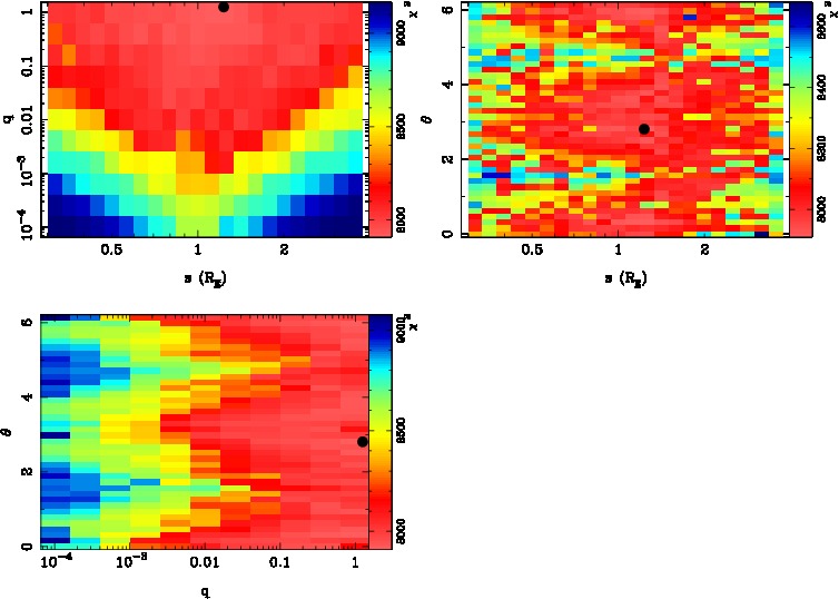 | tE(day) | q | s | α(radian) | ρ | χ² |
