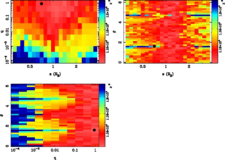 | tE(day) | q | s | α(radian) | ρ | χ² |