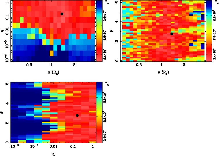 | tE(day) | q | s | α(radian) | ρ | χ² |