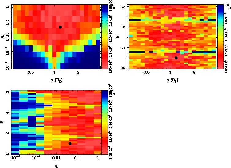 | tE(day) | q | s | α(radian) | ρ | χ² |