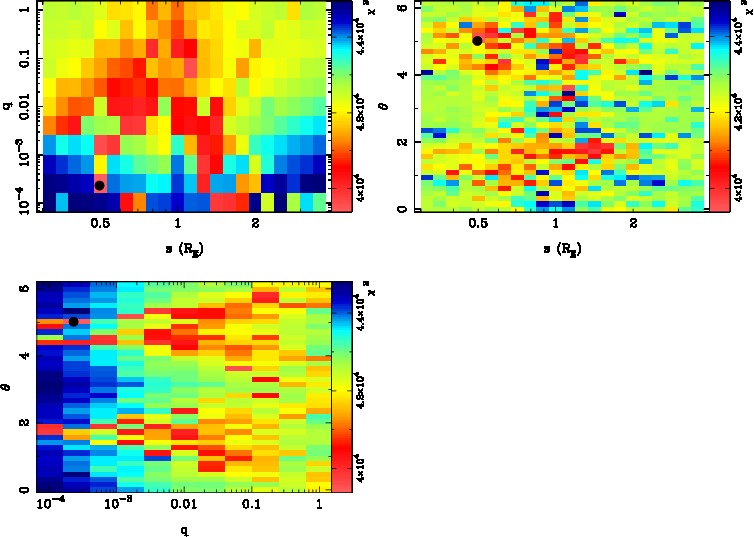 | tE(day) | q | s | α(radian) | ρ | χ² |