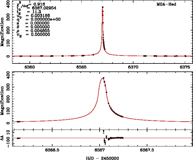 | t0(HJD-2450000) | tE(day) | q | s | u0 | α(radian) | ρ | χ² |
