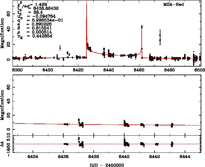 | t0(HJD-2450000) | tE(day) | q | s | u0 | α(radian) | ρ | πE,N | πE,E | χ² |