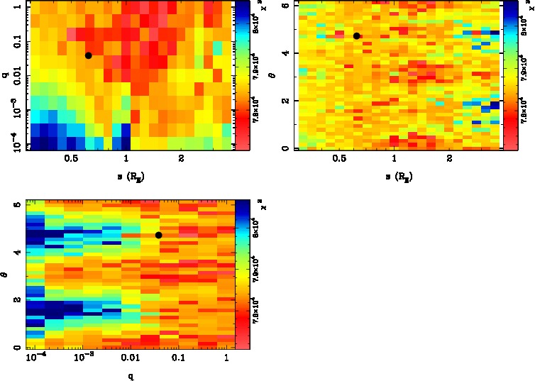 | tE(day) | q | s | u0 | α(radian) | ρ | πE,N | πE,E | χ² |