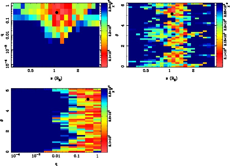| t0(HJD-2450000) | tE(day) | q | s | u0 | α(radian) | ρ | πE,N | πE,E | χ² |