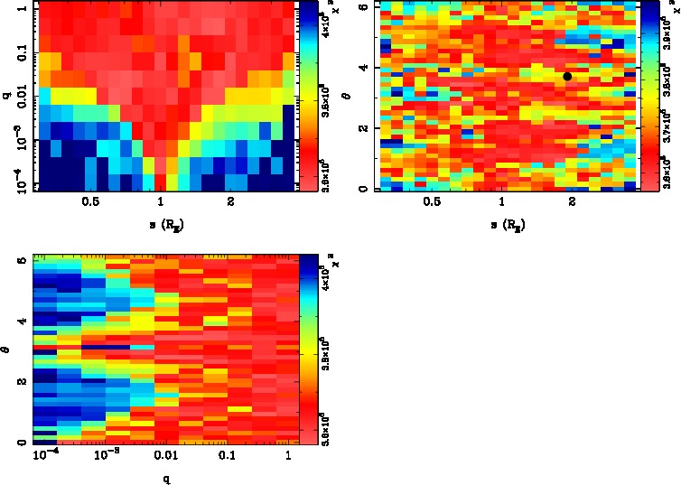 | tE(day) | q | s | u0 | α(radian) | ρ | πE,N | πE,E | χ² |