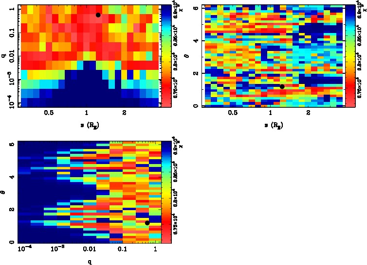 | tE(day) | q | s | α(radian) | ρ | χ² |