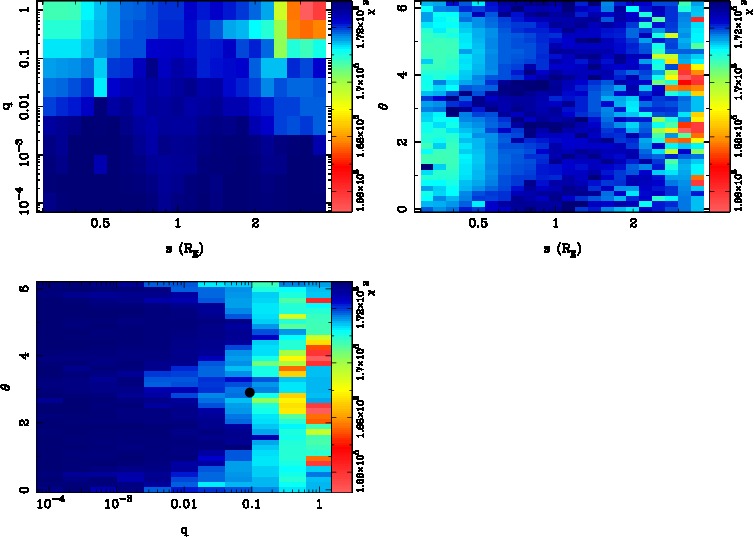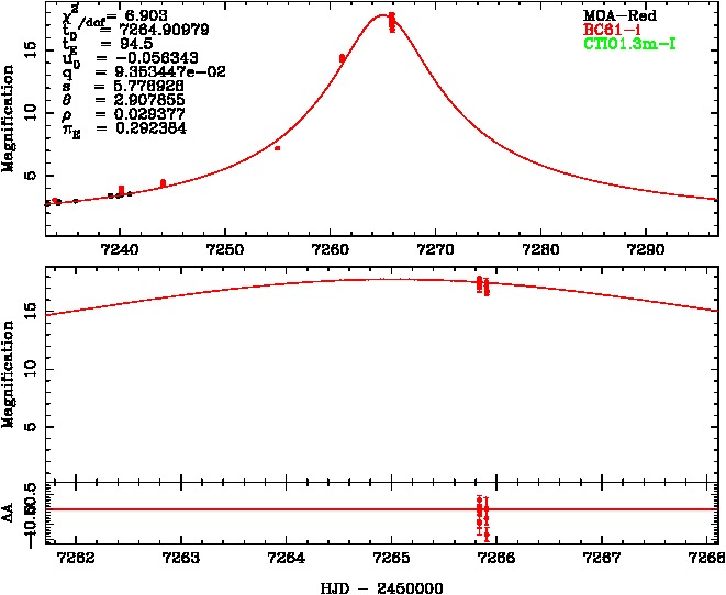 | tE(day) | q | s | u0 | α(radian) | ρ | πE,N | πE,E | χ² |