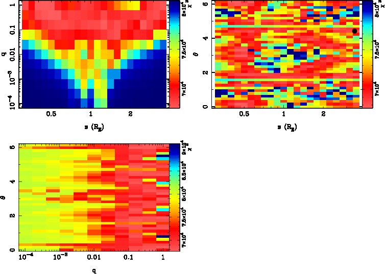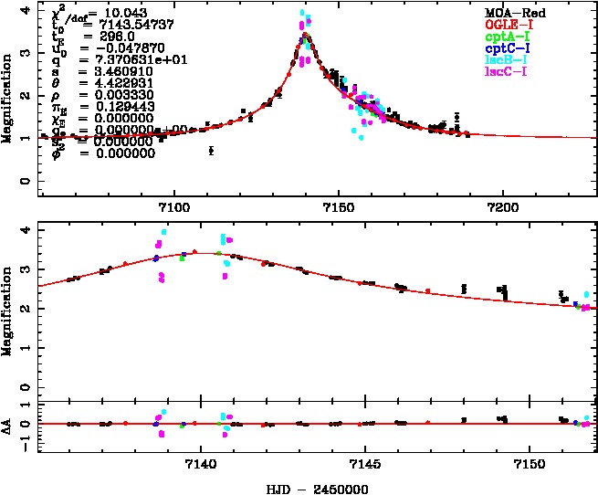 | tE(day) | q | s | u0 | α(radian) | ρ | πE,N | πE,E | χ² |