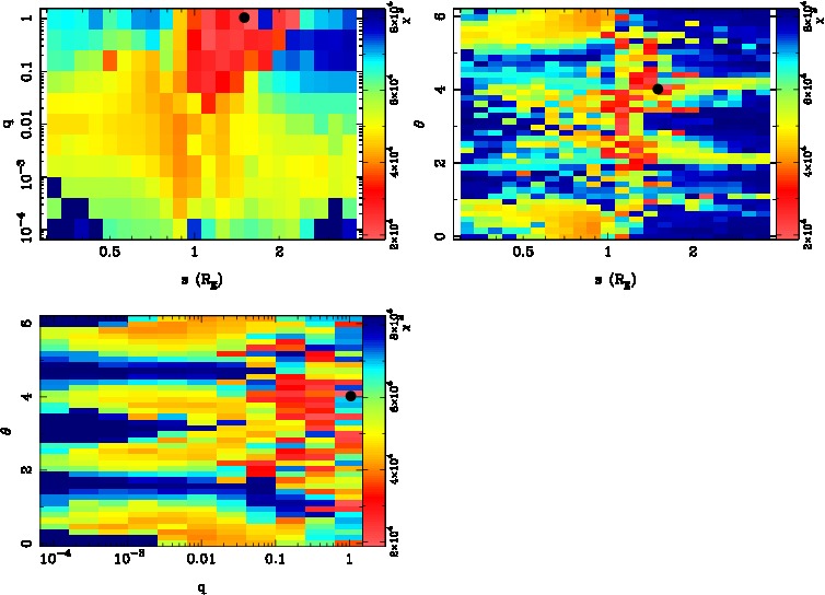 | tE(day) | q | s | u0 | α(radian) | ρ | πE,N | πE,E | χ² |