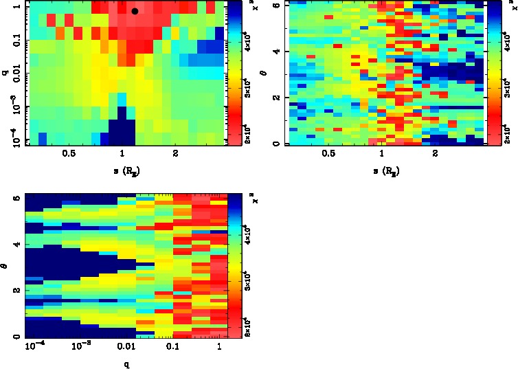 | tE(day) | q | s | u0 | α(radian) | ρ | πE,N | πE,E | χ² |