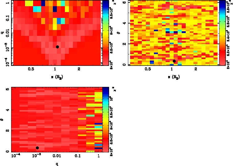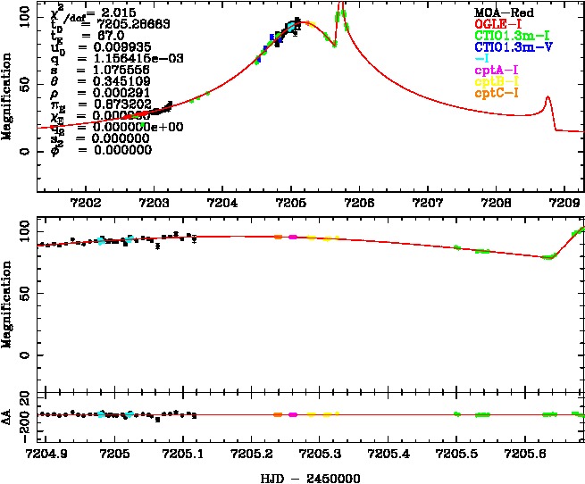| tE(day) | q | s | u0 | α(radian) | ρ | πE,N | πE,E | χ² |
