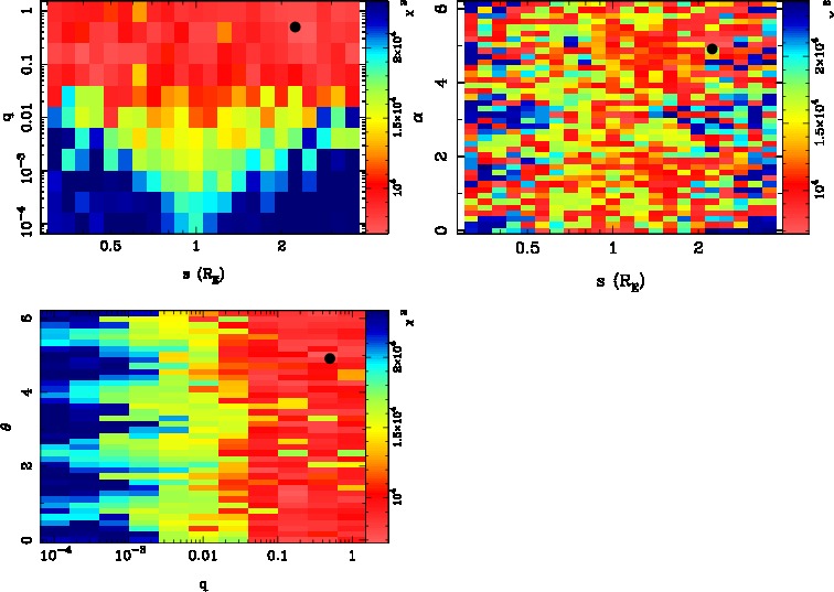 | tE(day) | q | s | u0 | α(radian) | ρ | πE,N | πE,E | χ² |