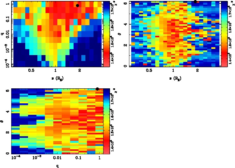 | tE(day) | q | s | α(radian) | ρ | χ² |