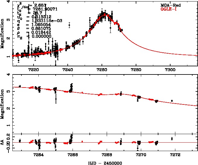 | tE(day) | q | s | α(radian) | ρ | χ² |