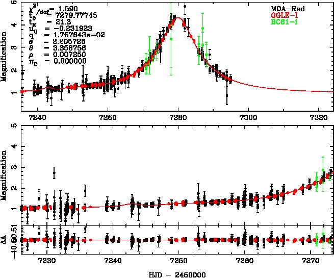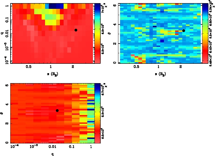 | tE(day) | q | s | α(radian) | ρ | χ² |