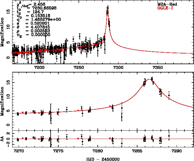 | tE(day) | q | s | α(radian) | ρ | χ² |