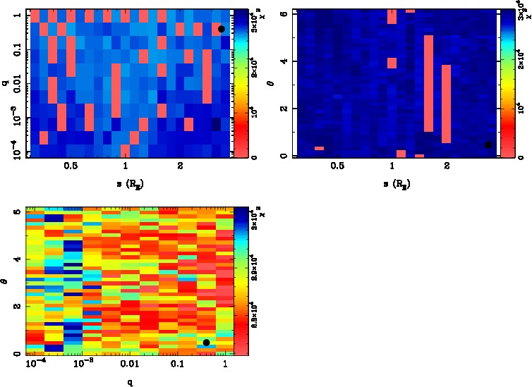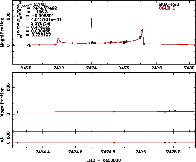| tE(day) | q | s | u0 | α(radian) | ρ | πE,N | πE,E | χ² |