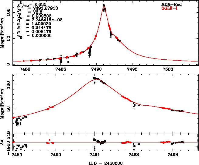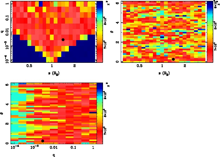 | tE(day) | q | s | α(radian) | ρ | χ² |