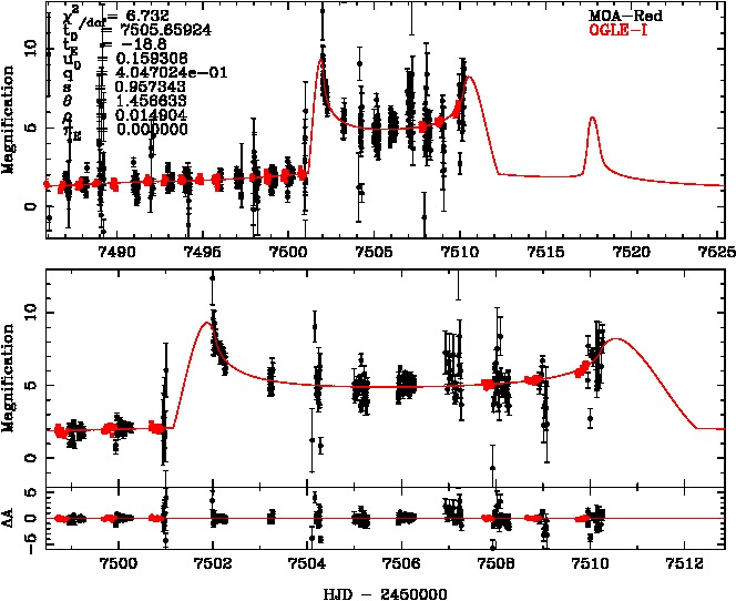 | tE(day) | q | s | α(radian) | ρ | χ² |